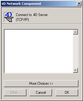 Similarly, if the machine has more than one network protocol installed, the "Other..." button will still only be activated if there is more than one corresponding 4D Network Component installed.