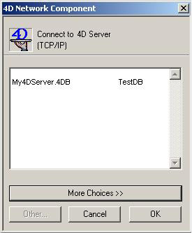 OP Select 4D Server displays the "Connect to 4D Server dialog" and allows you to graphically choose a 4D Server for the netCompID network component