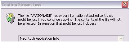 If you get a message stating that you will lose some information when copying to a floppy disk, check the box for the description. In most cases, it is the Macintosh Application Information.