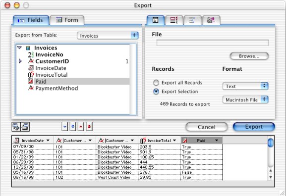 Below you will see a screenshot of the Export dialog. Notice the set of buttons immediately above the left-most data column.