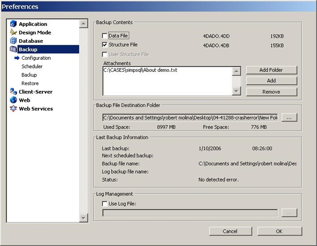 4D 2004 allows a user to specify a set of files and/or folders to be backed up at the same time as the database. The files can be of any type (documents or plug-in templates, labels, reports, pictures,