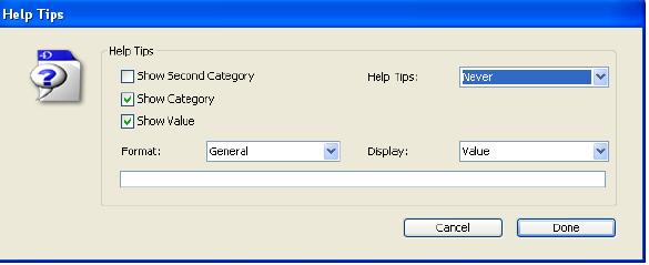 For the Help Tips field you can select one of the following: