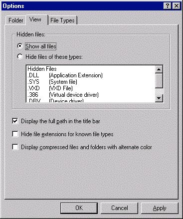 Note: These steps and the Option Dialog will work with Windows NT 4. Other versions of the Windows OS may work slightly differently.