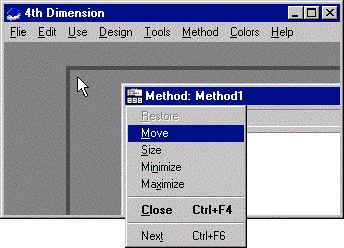 Occasionally, while running 4D on the Windows platform, an internal window will be hidden off the side of the screen and out of reach of the mouse. This tech tip covers the steps for moving the window using key commands. The steps are: