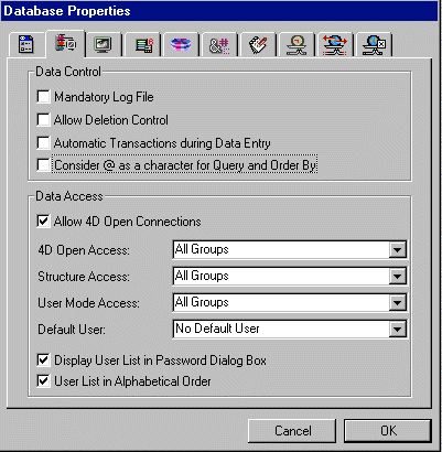 1. In the Database Properties dialog box, click on the second tab, "Data control and access".