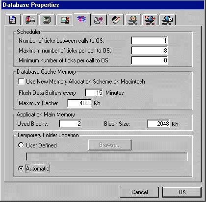 Note: If the access path is incorrect, the Automatic mode is reactivated (without the option being modified in the Database Properties dialog box). It is the database developer's responsibility to make sure that the access path (names of the volumes or folders) is not modified.