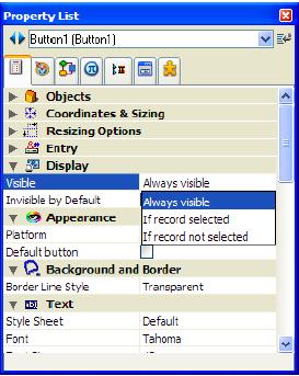 - Selected "If record is selected" for the Visible property of the Static Picture