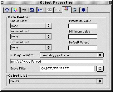 4th Dimension has a date format and a date entry filter that are especially useful for making sure your database is Y2K compliant. The entry filter to use for date entry is !0&9##/##/####. It forces the user to enter the century as part of the date. If the user has not entered the century in a date, the date will be considered invalid and not accepted.