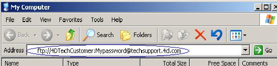 | ftp://4DTechCustomer:Mypassword@myftpsite.4d.com |