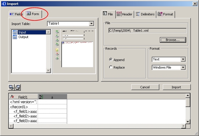 For these reasons it is advisable to create a form to be used only for importing data into 4D.