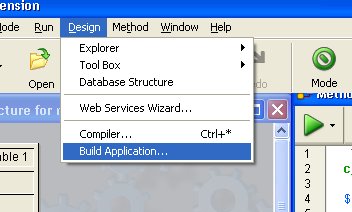 When licensing a merged, single-user application for volume deployment, it is necessary to apply a Runtime Volume License so that others may use your application. This is handled inside 4D's interface, albeit in a different menu than when you registered the 4D Runtime Volume License. Navigate to Design->Build Application: