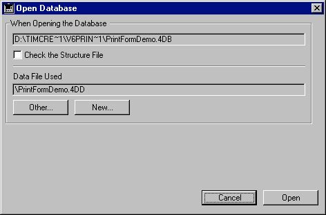 The stand-alone version of 4D 6.5 includes the ability to perform a diagnostic check of the structure file when you open a database. When you start 4D 6.5, you are presented with the "Open Database" dialog: