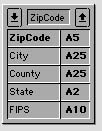 [Up Arrow] and [Down Arrow] Scrolls up and down through the field list in a table or subtable.
