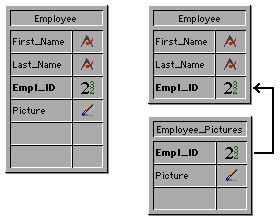 There is a simple trick that can be used to work around this issue in some situations. If a table has a BLOB, text or picture field that is not used for most operations, the field can be assigned to another table created for this purpose. This table is referred to as a fat table. The relation between the two tables must be a manual relation so that the record in the fat table is not loaded unless it is explicitly told to.
