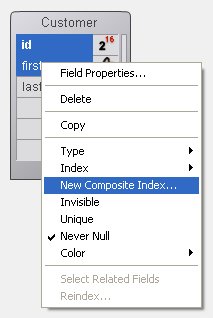 The only indexing option that is not available in these two ways is the Composite Index type. To enable this type of indexing, highlight two fields in the Structure Editor, right click the selection and a new option, New Composite Index, becomes available: