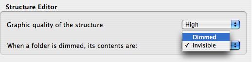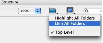 If "Dimmed" is selected, the tables will be displayed in the following manner when "Dim all folders" is selected from the Folder toolbar.