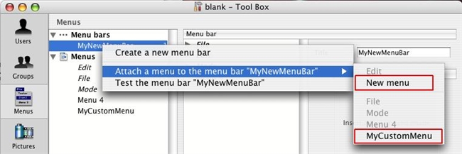 - go to the option "Attach a menu to the menu bar YourMenuBarName"