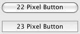 With the new Mac OS 10.5 (Leopard) when a regular 4D button is sized over 22 pixels high the standard Mac Push Button rounded edges become square. The following screen shot shows a button 22 pixels high and one 23 pixels high to highlight the difference: