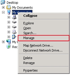 On XP/2000/2003 right-click on "My Computer" and choose Manage from the contextual menu.