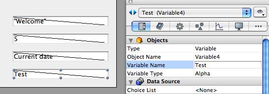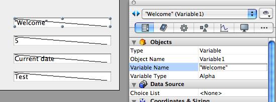 4D v11 SQL now allows you to enter text, methods which return a value, and 4D functions or 4D commands directly into the object variable name field in the object property list.