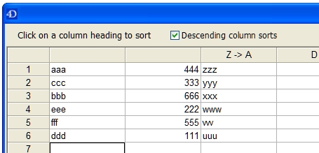 And then set up the SortColumn method something like this (a hard-coded 3 column by 6 row data area used here for example purposes):