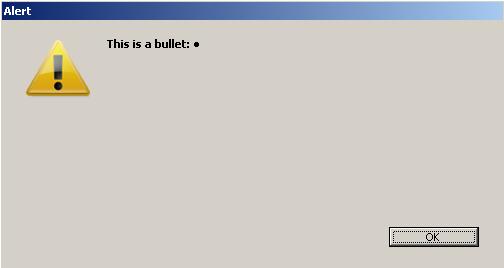 In Macintosh, a short keyboard combination will give you a special character, such as a Bullet (•) is done by using Option+8 (US Keyboard). The key combination for Windows is Alt-0149(US Keyboard). A reference to these key combinations can be found in the language reference within the Ascii Codes section.