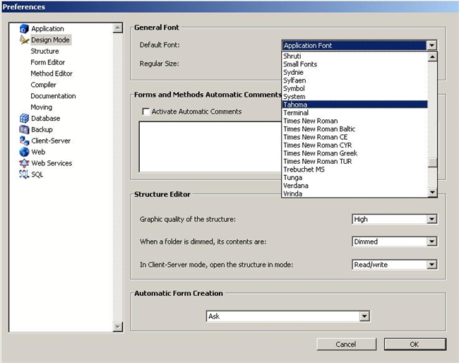 To maintain the same appearance on Macintosh, we are going to change the Preferences in 4D for our database to use a specific font, instead of the Application or System default: