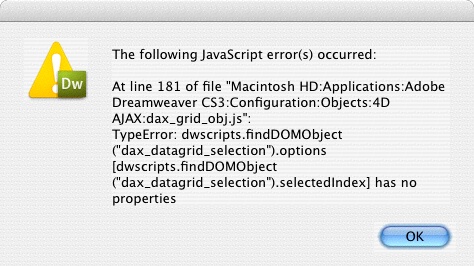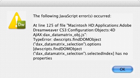 Tech Tip: "4D Ajax for Dreamweaver" extension errors at line 125 or 181