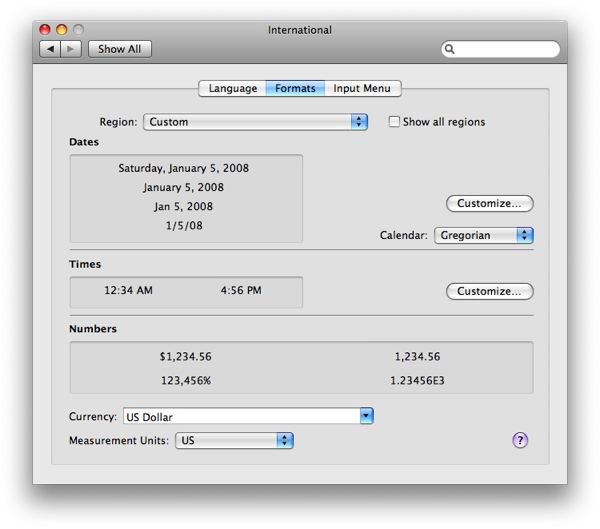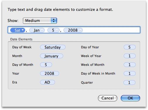 Date expressions are translated to strings using the default format specified in the system. Therefore the formats using System dates can be modified to return string results using the Mac OS X date formats.