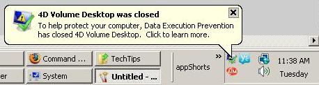 DEP can sometimes cause problems launching your 4D application as well as sporatic issues during the runtime of your application.