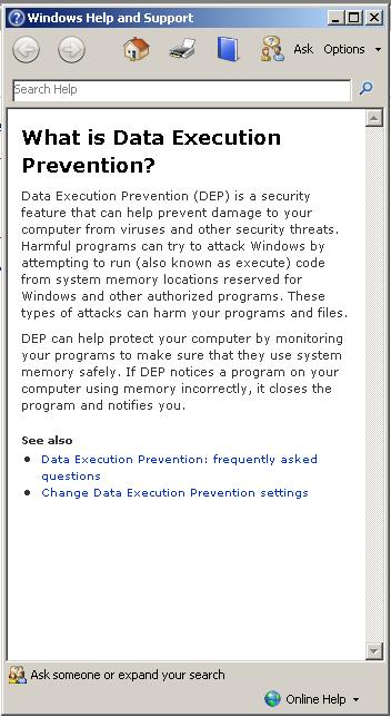Sometimes DEP crashes are accompanied error messages such as the following: