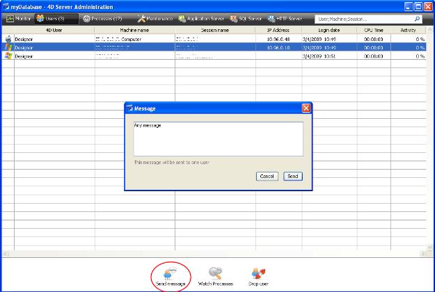 In 4D Server v11 SQL, the administrator can send messages to clients that are logged on: