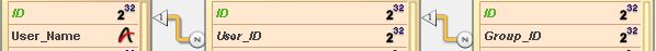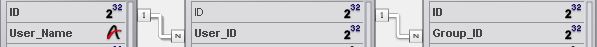 If the developer manually created a relationship between two tables, the structure diagram represents the relationship as shown below: