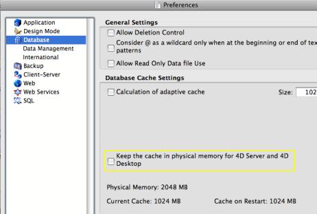 There is a setting in the 4D Preferences labled "Keep the cache in physical memory...":