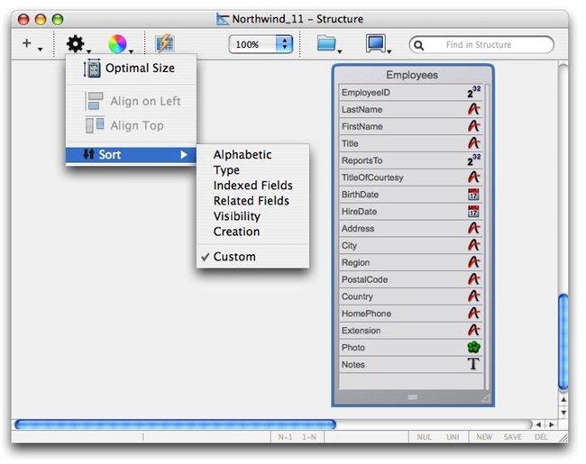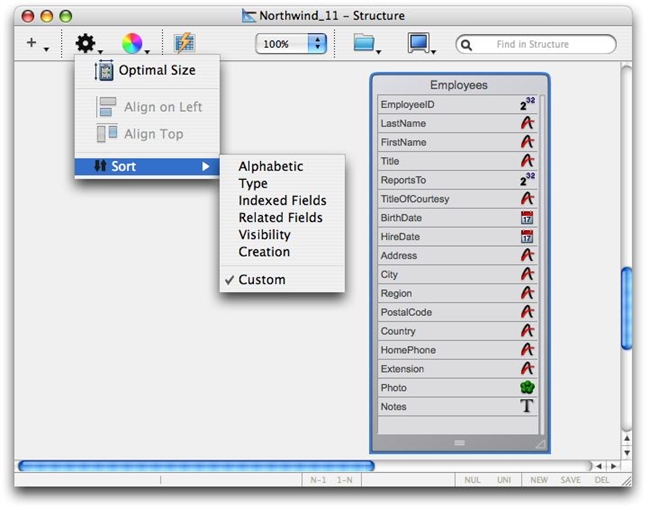 This can be used to set an order for each of your tables that makes it most easily read and makes sense when browsing the Structure Editor, but which is not the actual field order of the table. This way you can also view tables based on the type of field or another criteria and easily return to your normal "viewing order" easily.