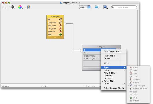The field types for the ID field in the Company table are grayed out and cannot be edited!