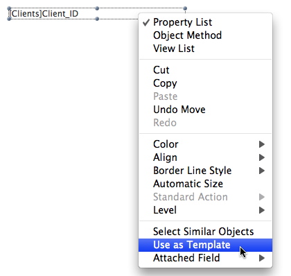 - Using the contextual menu of the object, select Use as Template.