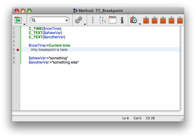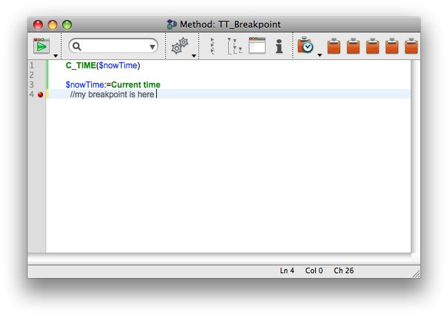 In 4D v11 SQL and previous versions, when you set a breakpoint on a line, it will stay on that specific line regardless of whether the code on that line is deleted or whether additional lines of code were added before that line.