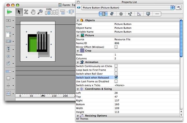 Set the Animation properties to Loop back to the First Frame. In this way the picture will change with every user click. - Drag the picture from the Picture Library and drop it onto the picture button.