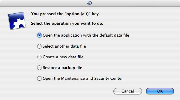 This dialog will present the 5 different ways you can open the 4D Server.