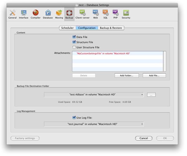 Along with the new additions to the Preferences and Database Settings in 4D v12, a new warning has been built in. It is used to highlight settings that are either invalid or that require 4D to perform an extra step (such as creating the Web Folder). These types of situations will only occur for those settings that require a folder location (such as specifying Default HTML Root or specifying a Backup File Destination Folder). If 4D detects one of these situations, it will mark the specific setting in red.