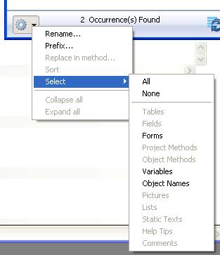 Replace in method, on the other hand, deals only with 4D code. This option can be used to perform a "global" find and replace in any number of methods.