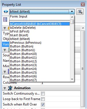 When creating a large application, it is sometimes necessary to create a form with many objects. It can be difficult to find the object that you need to update on such complex and large forms. The Property List can help you through this. By selecting any object and then clicking the dropdown list with the variable name and object name in parenthese,s you can view all the objects on a form.
