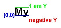 The green line is the 1 em line. The blue line indicates coordinates where the Y value is zero in a font system. The red line indicates negative Y values.