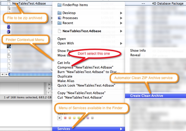 Once installed as a service (instructions included with the widget) it is available from the Finder contextual menu for any file, folder, or application package, such as a 4D .4dbase package. See the image below that illustrates how to invoke the service from the Mac OS X Finder.