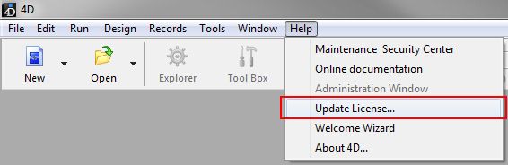 - From the HELP menu, choose UPDATE LICENSE...