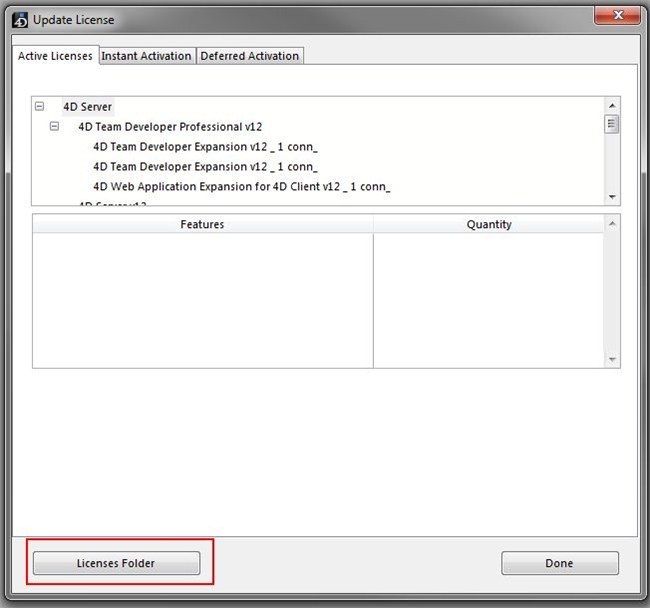 - From the "Active License" tab click on the "License Folder" button in the lower left corner of the screen.