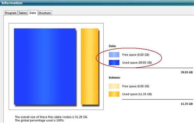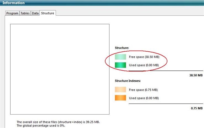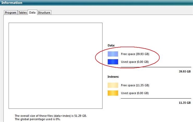Once the files have been parsed an image will display in the Information tab with the graphical representation of how much of the current space is used and free in the files, as shown here:
