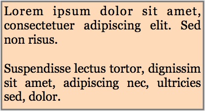 | $SVG_T:=SVG_New $rec:=SVG_New_rect ($SVG_T;5;5;410;220;0;0;"#777";"peachpuff";3) $txt:="Lorem ipsum dolor sit amet, consectetuer adipiscing elit. Sed non risus." $txt:=$txt+Char(Carriage return)+Char(Carriage return)+"Suspendisse lectus tortor, dignissim sit amet, adipiscing nec, ultricies sed, dolor." $txtArea:=SVG_New_textArea ($SVG_T;$txt;10;10;400;210;"Georgia";25;Plain;5) SVGTool_SHOW_IN_VIEWER ($SVG_T) SVG_CLEAR ($SVG_T) |