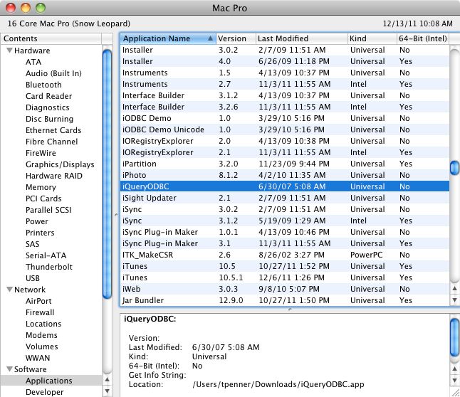 On the other hand, iQueryODBC is a Universal Binary Application as depicted in the following screenshot: